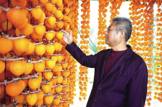 郑耀文在检查柿饼晾晒情况。