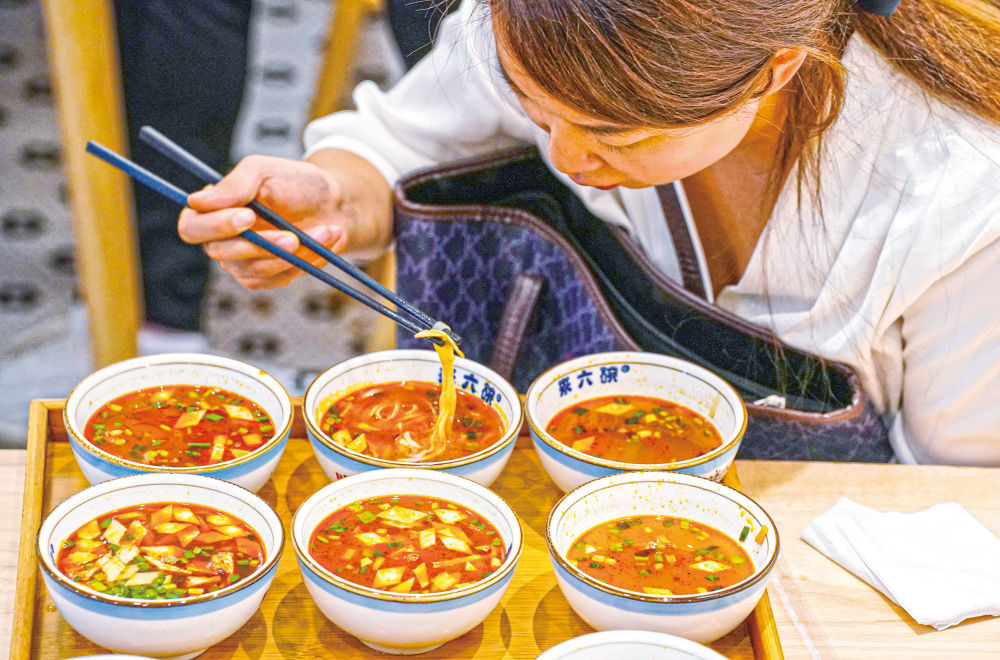 7月25日,顾客在一家岐山臊子面餐馆内品尝臊子面。新华每日电讯记者邵瑞摄