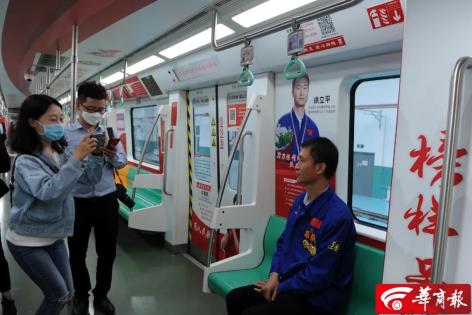 在主题专列首发车上,华商报记者还见到几位先进模范人物,“大国工匠”、最美奋斗者、 中国航天科技集团有限公司第四研究院7416厂特级技师徐立平站在自己的宣传海报前接受了记者采访,他表示,“火箭是非常精密的机器,一颗螺丝钉都不能出问题,我做的事就是雕刻固体燃料,很多人也叫雕刻火药,风险比较大,航天战线上有很多幕后英雄,我就是一名普通的一线工人,所有的奖项和荣誉都是对我们这种几十年来始终如一在一线默默无闻工作的肯定、激励,接下来,我们还要在平凡的岗位上做出更好的成绩来。”徐立平表示,地铁是城市的重要交通方式之一,人流量大,希望能通过榜样的力量,给人们潜移默化的影响,自觉遵守文明守则,才是最可敬的人。