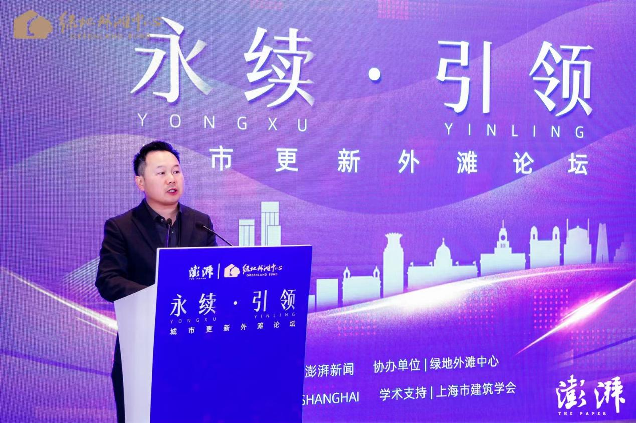澎湃新闻总裁、总编辑刘永钢在致辞中阐释了本次论坛主题:“永续”即尊重历史的前提下,可持续的城市更新;“引领”则是外滩引领上海这座城市走上世界舞台历史进程的180年,特别是在黄浦区核心引领区的目标建设及更新行动的前提下,宽度、高度、深度、广度,都与整个城市的发展同频共振,一起奔赴“全球卓越城市”目标。