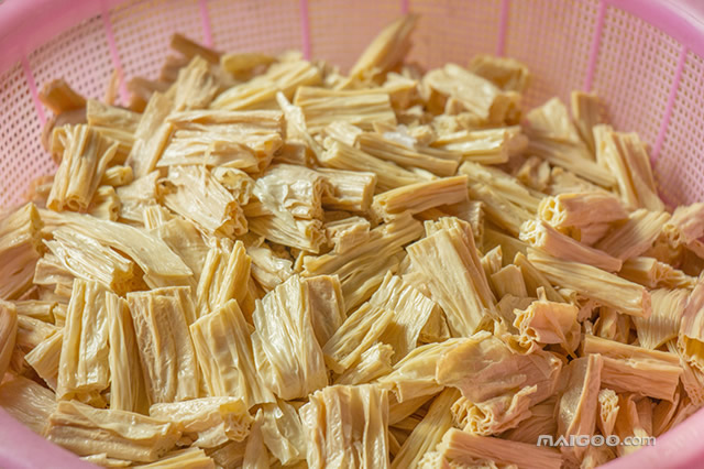 托洞腐竹是广东省云浮市云安区的特色产品,中国国家地理标志产品。托洞腐竹以云安区内第一高峰大云雾山下土生土长的黄豆或小青豆为主要原料,用山泉水制作,其生产过程全部手工操作,不加任何色素和添加剂。据maig oo网编了解,托洞腐竹的特点是外观油亮光泽,呈浅黄色或黄白玉色,枝条状或片状;口味纯正、甘淡而清香、无异味、韧性好、有嚼头、吸水膨胀后不粘糊;不燥不寒,营养丰富,受到不少人的喜爱。 【 详细>>】