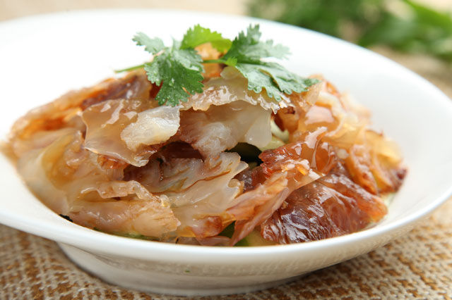 吕四海蜇是江苏南通启东市吕四渔港的特产,以质量上乘,加工精细闻名,是中国“海产八珍”之一。吕四渔港位于长江、黄海、东海海淡水交汇处,水质咸淡适宜,饵料充足,优质的海水资源为海蜇等海洋生物提供了良好的生长环境,所产的海蜇身体半球形青蓝色,半透明,上面有伞状部分,下面有八条口腕,口腕下端有丝状器官。经吕四渔民独特的传统加工工艺精制而成的吕四海蛰,具有皮白头红,没有沙子,酥松、爽口、鲜醇的独特风味,不仅畅销国内,而且远销东南亚、欧美等国家。 【 详细>>】