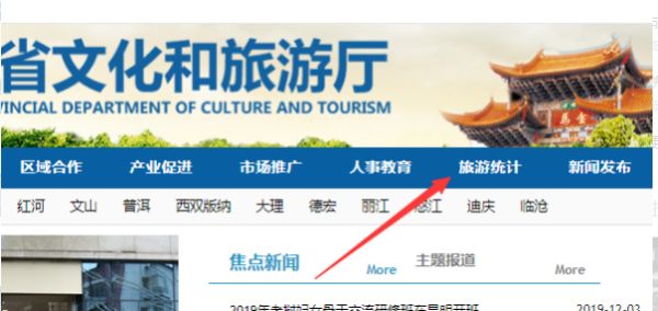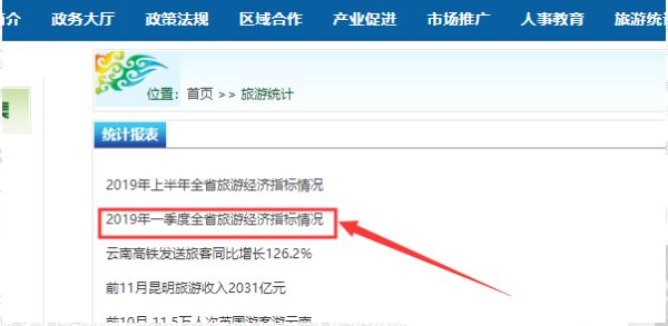 2、进入云南省旅游局主页后,找到“旅游统计”,记录当地近期旅游情况、人流等信息。