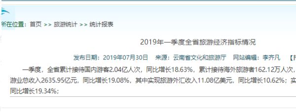 4、最后下图显示了2019年一季度全省旅游数据,包括旅游量、收入等信息。