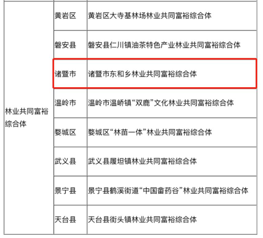 日前,浙江省林业局公布关于对2024年省林业推进共同富裕试点任务评审结果,诸暨市东和乡林业共同富裕综合体项目成功入选,并获得1000万元省补资金。这也是绍兴首个入选项目。