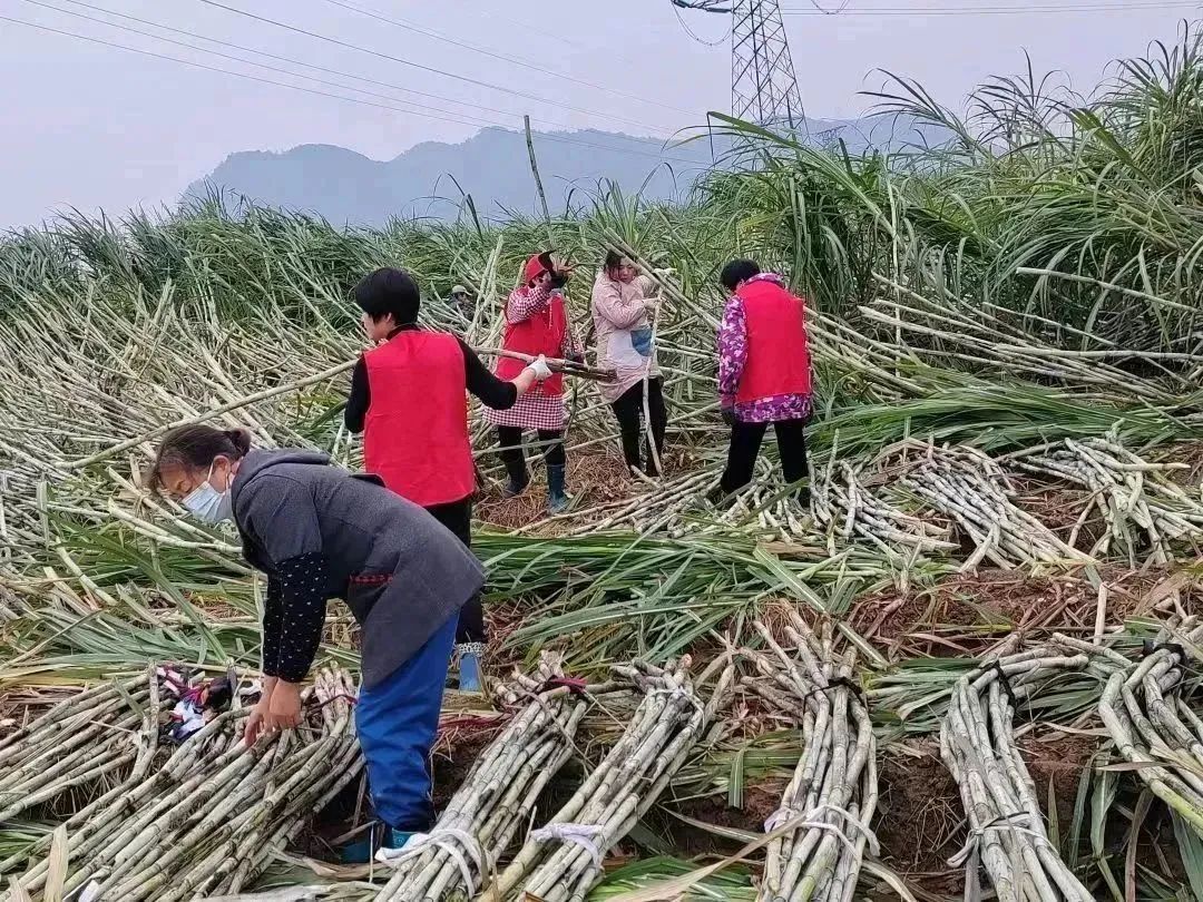 知悉这一情况后,安华“蔗娘志愿队”队长周惠芳迅速组织巾帼志愿者力量,第一时间组织41名妇女前往产业园帮忙收糖梗。“蔗娘”志愿者们不顾锋利的糖梗叶划破手脸,也暂时抛下各自的小家,在短短的5天时间内,把120亩的糖梗全部收割完毕。“我们实行分片承包,一人承包一丘,这样更有紧迫感,前几天气温低,使得糖梗甜度更好,而且这几天天气又好,要赶紧收进来加工。所以我们要铆足劲加油干,低温加好天气生产出来的食品很优质。”“蔗娘志愿队”副队长鱼晓荣说。