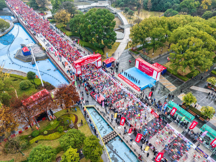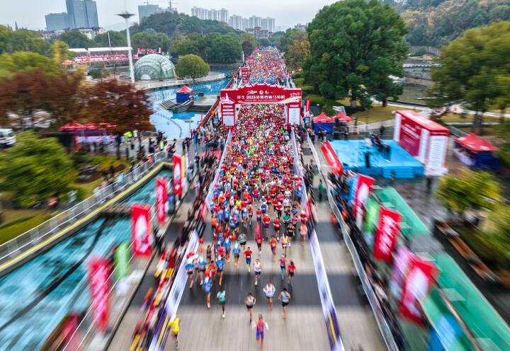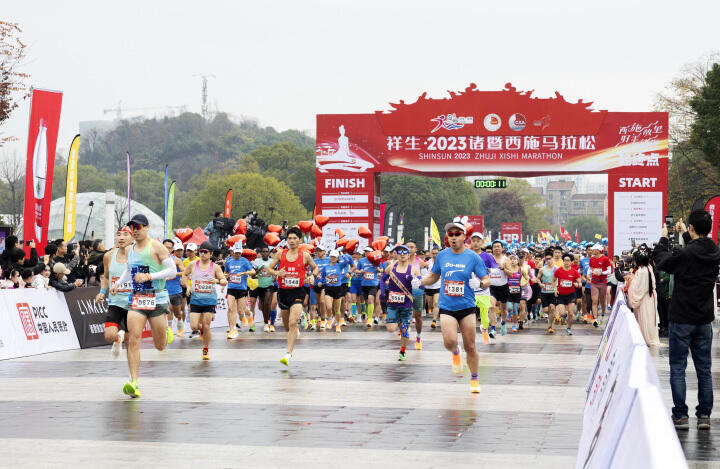 “3、2、1!”伴随着发令汽笛声,12月10日,2023诸暨西施马拉松在浙江省诸暨市燃情开跑。