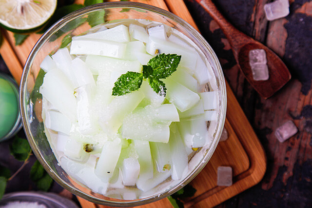 拌海凉粉是大连特色美食之一,选用的原料是海底礁石上的一种水草叫牛毛菜将它晒干后上锅熬7-8小时,再过滤、晾凉后切成条形便成海凉粉。熬海草的时候一定要大火烧开转小火,小火慢慢熬煮出胶质来;拌海凉粉的调料随个人喜好而加,海凉粉吃到嘴里的感觉是入口即化特别清新,是夏季的一道清新的开胃凉菜。此外MAIgoo美食小编觉得,加入一些饼子、水果等,口味更丰富。 【 详细>>】