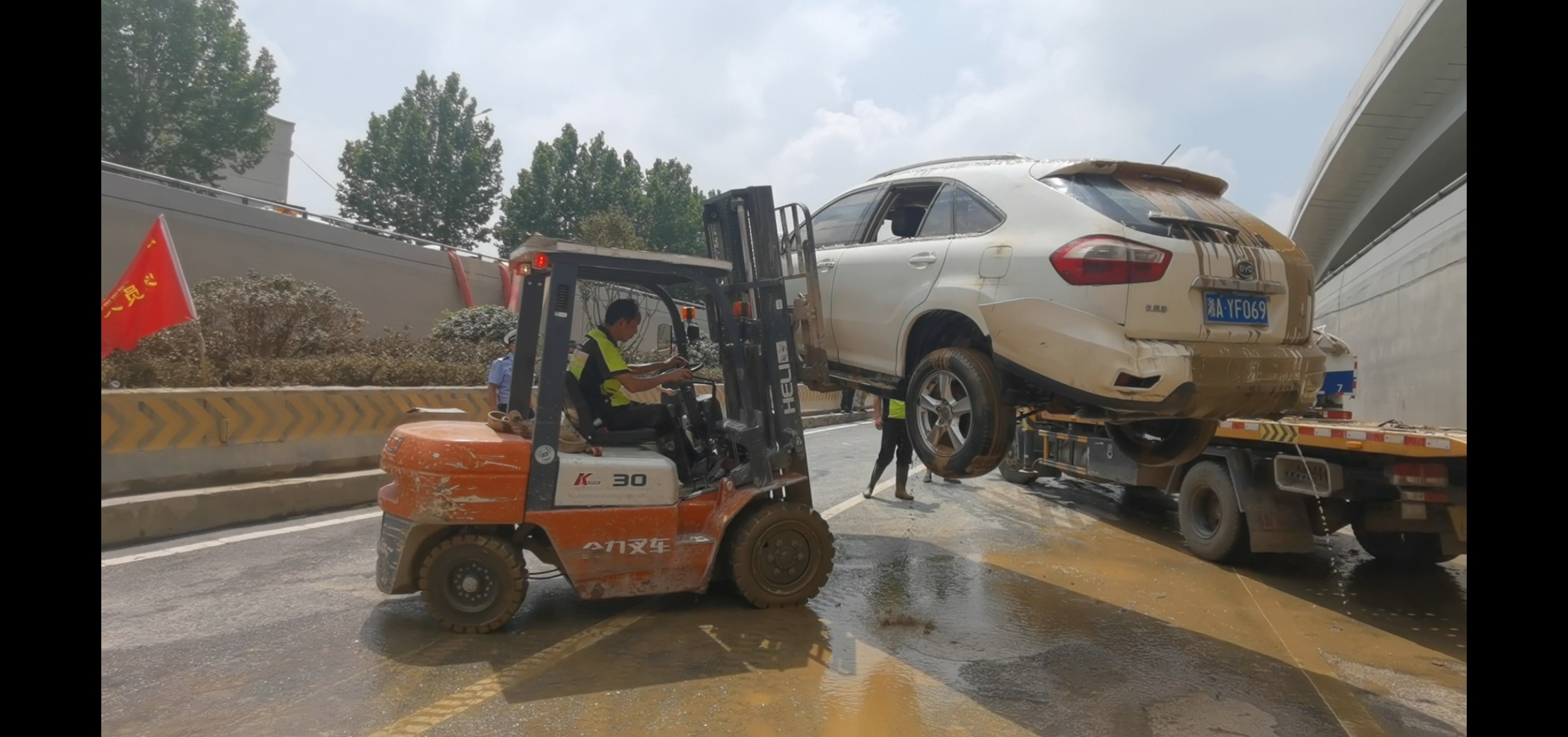 现场,正在用叉车往外托送被泡车辆的陕西唐龙救援队长李汉军,从7月23日上午9点多,一直忙碌将近30个小时,没有休息。他说,自己起初的工作,主要是进水搜查摸排遇难者。他今年47岁,称自己不感觉累,因为这是一份责任。“我们有特定的手势。只是一个挥手的动作,在别人看来很简单。但我们这个手挥出去,代表着一份责任。”他说。