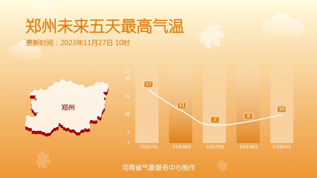 28到30日,受冷空气影响,全省气温普遍下降8度左右。