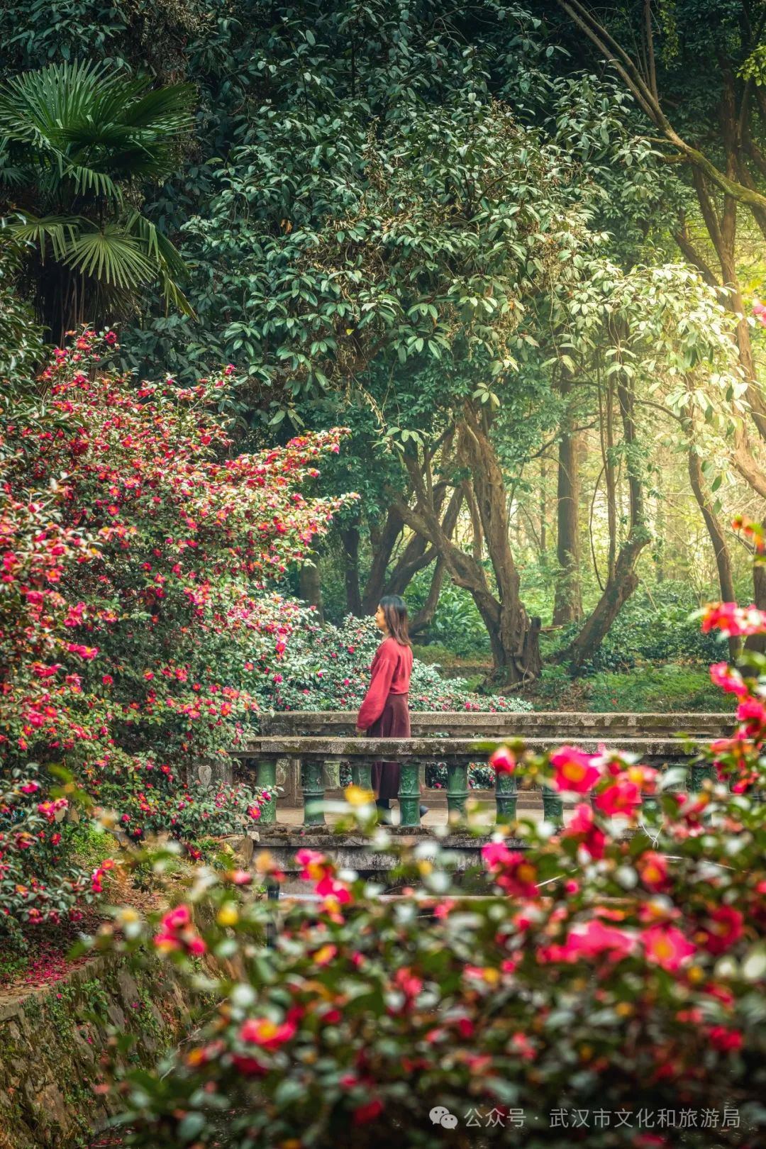 会玩的人,早就去「武汉植物园」里看山茶花啦。热烈的红山茶密密的缀在树上,被网友们称赞像油画。