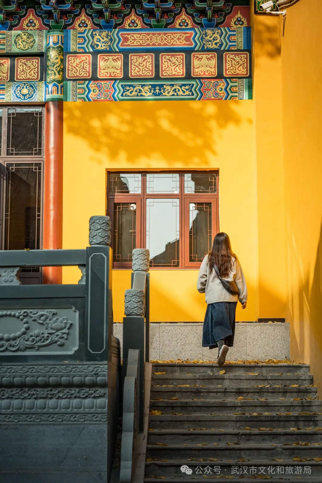 这届年轻人,开始流行逛寺庙。色彩金黄的「宝通禅寺」,是武汉的顶流之一。