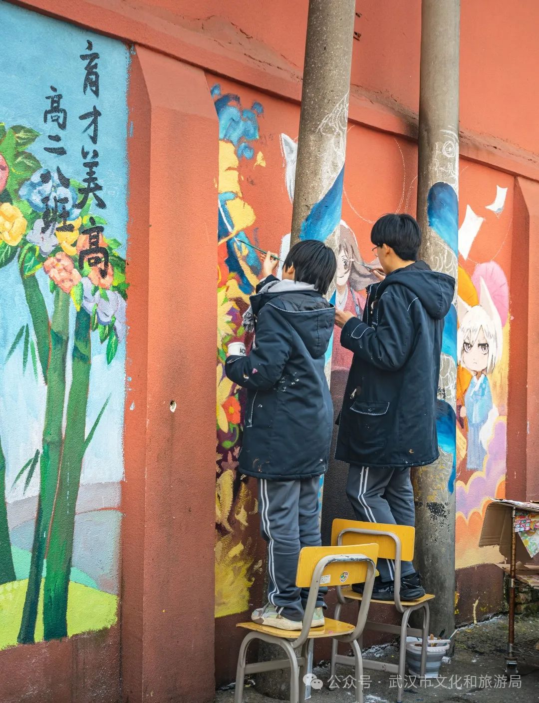1月,在年轻人中依旧火爆的「古德寺」,寺外的红墙被育才美术高中的学生承包了,各种造型的龙上墙,红火又生动。