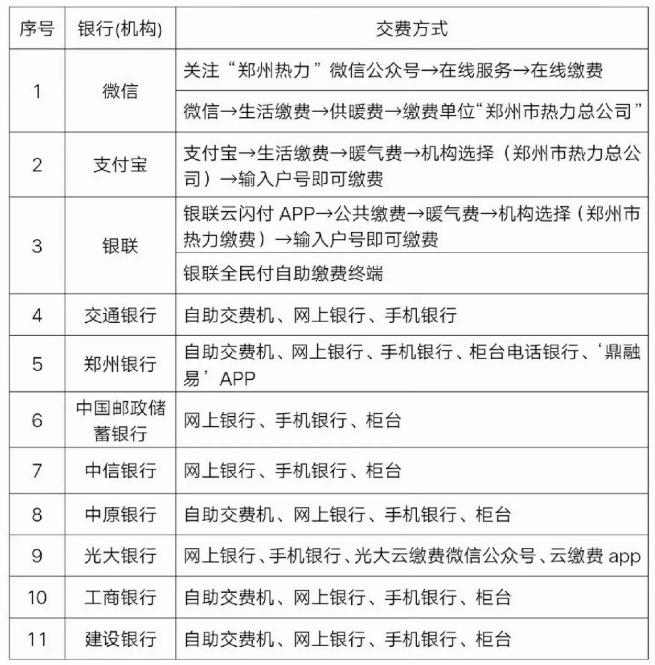 可通过微信、支付宝、郑好办APP、云闪付APP、银联以及各指定银行进行交费。