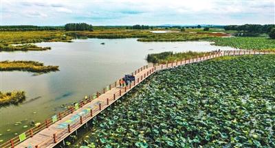 游客在辽河七星湖湿地公园游玩。张文魁摄