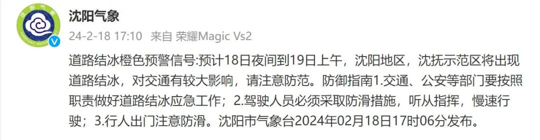 沈阳市气象台发布