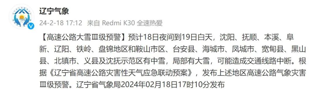 辽宁省气象局相继发布