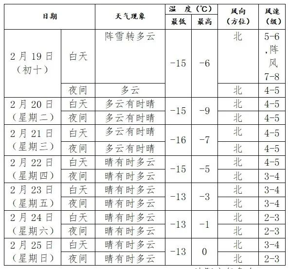 19日白天,抚顺、本溪、丹东、辽阳、铁岭地区和沈抚示范区及沈阳市区阵雪转多云,其他地区多云;最高气温锦州、阜新、铁岭、朝阳、葫芦岛地区0℃到3℃,其他地区4℃到7℃。