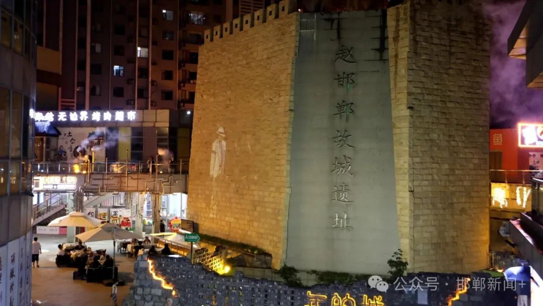 夜幕降临,华灯初上,位于光明大街与渚河路交会处的旺角商业街区,各餐饮门店忙得不亦乐乎,高大的赵邯郸故城遗址城墙、复古的邯郸啤酒厂、以彩灯扮“亮”的邯郸成语典故,都吸引了满满的人气。