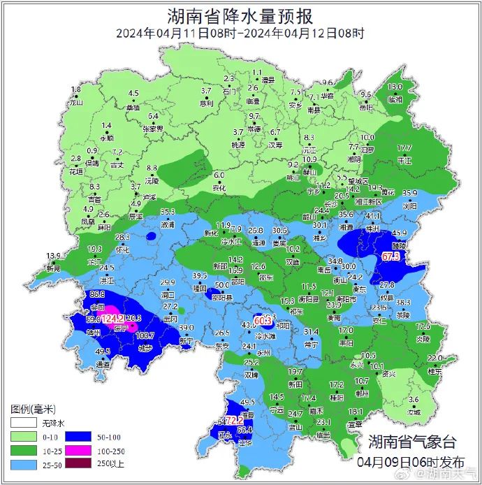从全省的情况来看,9日晚至11日白天,降雨自北向南逐渐发展,其中10日晚至11日白天湘中局地有暴雨,并伴有短时强降水、雷暴大风、冰雹等强对流天气;气温较常年同期明显偏高。