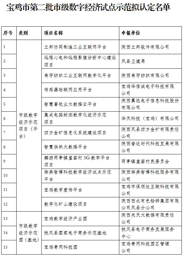 宝鸡市第二批市级数字经济试点示范拟认定名单公示 宝鸡市人民政府