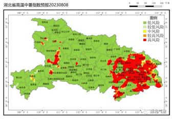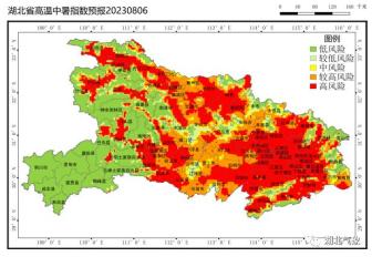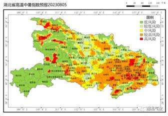 8月5日鄂东部分地区高温中暑风险较高,鄂西局部达高风险