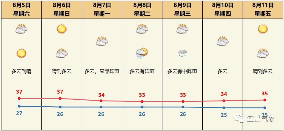 预计8月5日—7日湖北省高温天气逐渐发展加强,大部地区高温将升至35~38℃,局部可达39℃以上,8日鄂中高温减弱、东部维持,7—8日相对湿度持续偏高。根据湖北省高温中暑指数预报,随着超过36℃累积温度的增加和日平均气温的逐渐升高,极易发生中暑等级的范围逐步扩大。预计:
