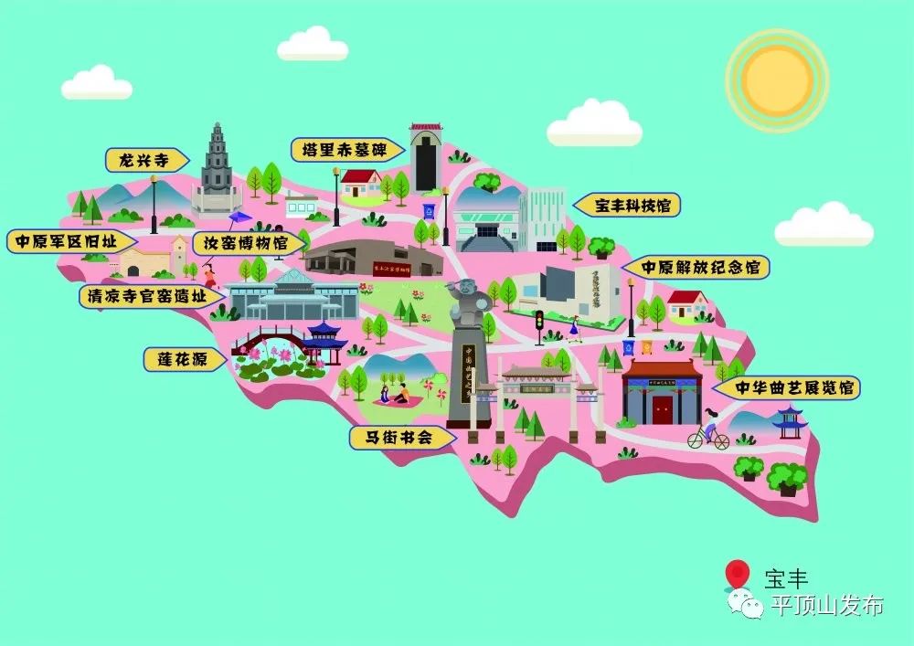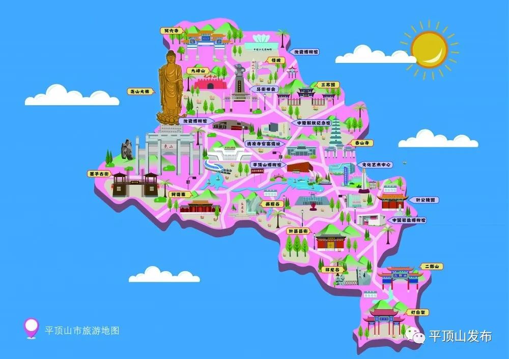看完这组赏心悦目又萌又Q的手绘旅游地图有没有很想来平顶山看看的冲动,实地欣赏图中的各个旅游景点,现场感受鹰城带给你的各种美。