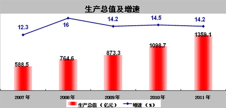 2011年,面对复杂多变的宏观经济形势,全市上下认真贯彻落实中、省关于加强和改善宏观调控的各项政策措施,按照“四围绕四提升”的工作要求,牢牢把握科学发展这个主题和加快转变经济发展方式这条主线,正确处理保持经济平稳较快发展与调整经济结构的关系,国民经济继续朝着预期方向发展,呈现增速平稳较快、物价逐步趋稳、结构继续优化、效益明显好转的态势,“十二五”起步稳健、开局良好。