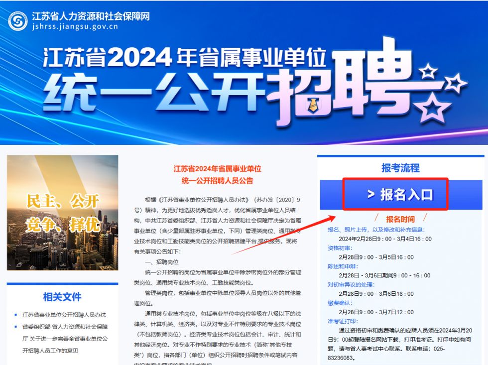 官网入口:江苏省2024年省属事业单位统一招聘人员公告 (jiangsu.gov.cn)