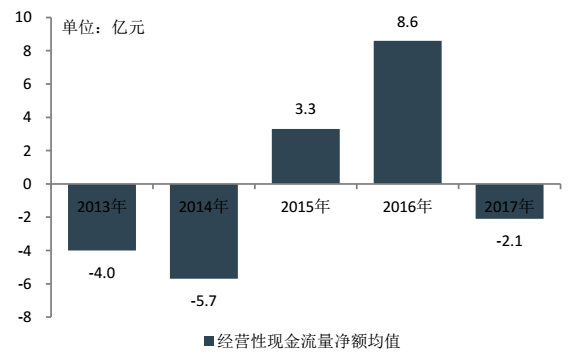 图30 百强企业2013-2017年经营性现金流净额均值