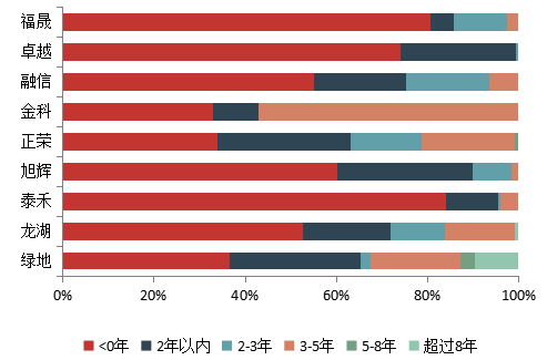 图25 百强代表企业可售货值按不同城市土地去化周期划分结构