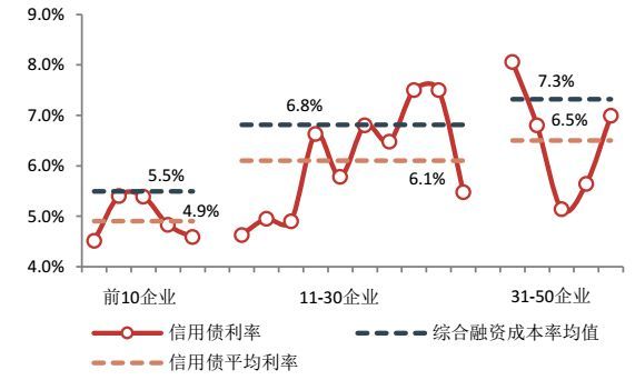 图20 百强企业不同层级2017年信用债、综合融资成本率情况