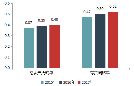 图22 百强企业2015-2017年周转率变化情况