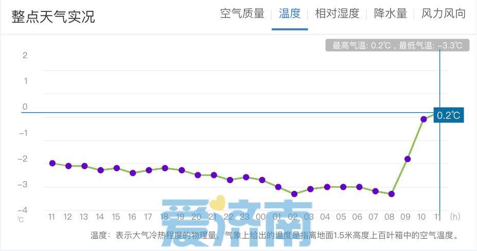 监测显示,今日11时起济南气温开始回归零上,11时30分实时气温1.7℃,预计白天最高气温在3℃左右。目前,济南市气象台继续发布道路结冰黄色预警信号,请注意防范。