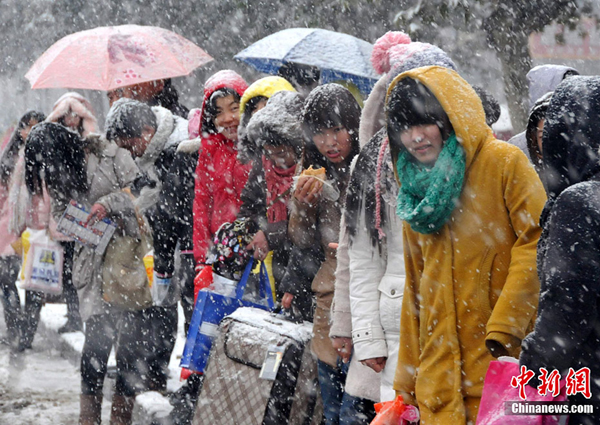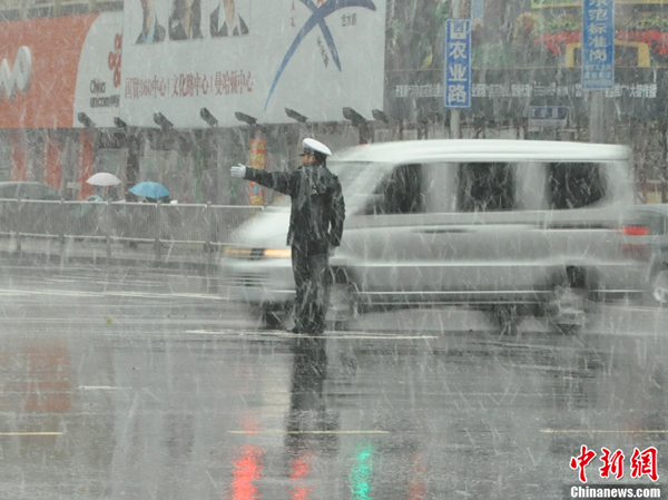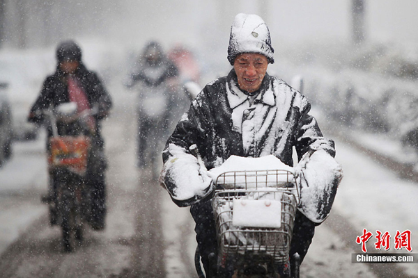 11月29日下午15时左右,郑州降下今年入冬以来第一场雪。大风裹挟着鹅毛大雪从天而降,行人艰难前行。据河南省气象局消息,此次降雪是受较强冷空气和西南暖湿气流的共同影响造成的,预计时间不会持续很久。 胡影 摄