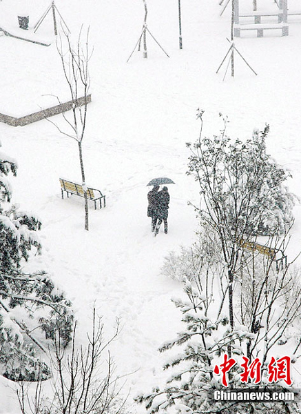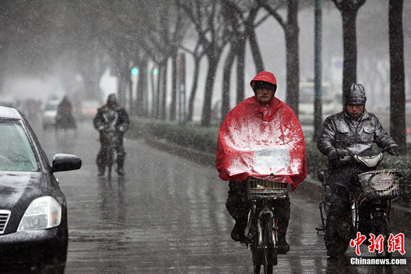 11月29日,山西太原出现今冬首场降雪天气过程。当地气象部门已提前发出迎接大雪的预警。中央气象台监测显示,从11月28日晚上开始,一股较强的冷空气从内蒙古方向南下逼近华北地区,未来几天,中国中东部将再度出现降温和雨雪天气。中新社发 张云 摄