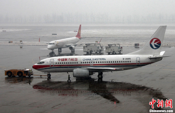 11月29日,受大雪天气影响,太原武宿国际机场共有56架次出港航班被取消。当日13时24分,太原武宿国际机场因大雪天气暂时关停,共117架次航班取消或备降至附近机场。多数滞留旅客已妥善安置在太原市区,目前机场正在全力清扫积雪,预计30日6时可恢复运行。范敏达 摄 图片来源:新华网