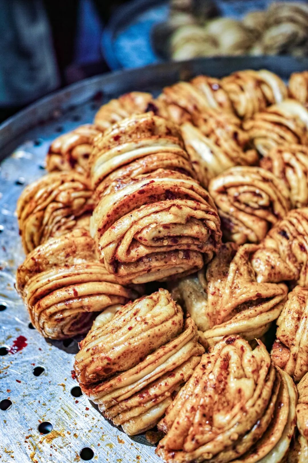 油泼辣子,是宝鸡融汇各地风味的标志:细细长长的本地秦椒碾成细面,川味的麻藏进凤县花椒,变成辣子提味的独门秘籍,配上来自广西、云南的桂皮、八角和西安常用的芝麻。诸多调料,使得油泼辣子不再激情火辣,而是韵味悠长。