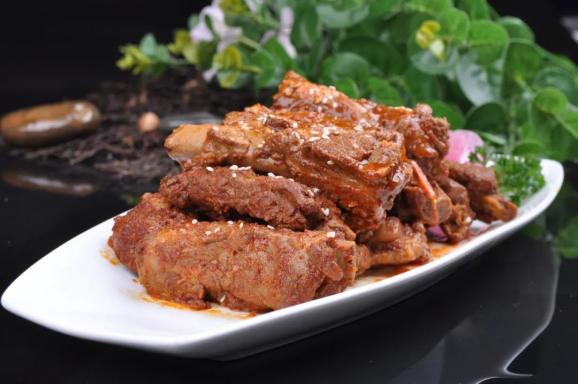 臊子,还能肉上加肉,变成宝鸡最“硬”的菜——臊子排骨。不同于浓油赤酱的红烧、糖醋,酸酸辣辣的臊子,点化了排骨的肥腴。排骨被臊子汤浸润,表皮光泽诱人,大块肉因醋的缠绵,变得入口可化。
