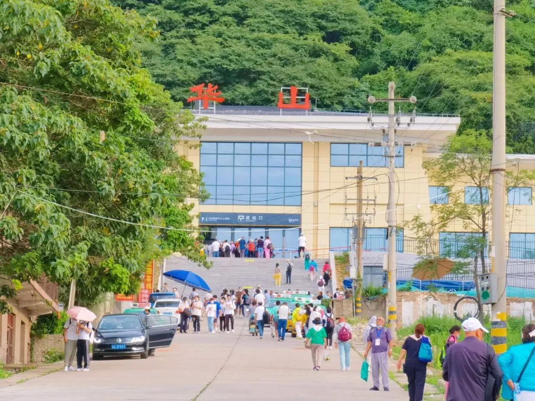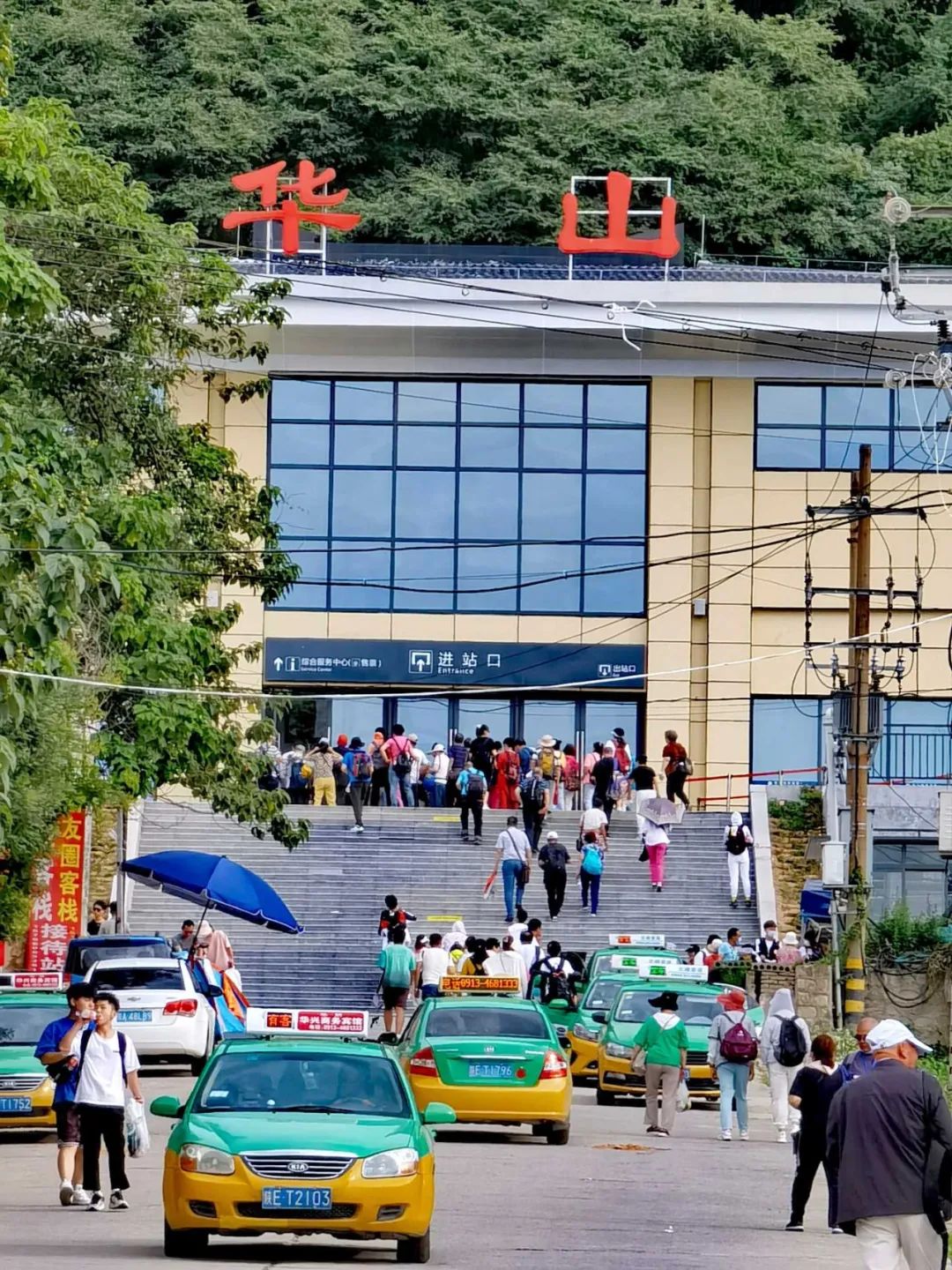 二十多年前的华山没有开通登山索道,中外游客都是乘火车到华山站下车,再从玉泉院进入谷口开始登山之路,多数是晚上开始爬山,赶在凌晨前登上华山东峰看日出。彼时的华山站,办理十余趟客车业务,每天挎着包、背着相机、戴着太阳帽,三五成群的游客络绎不绝,一派热闹景象。站前广场总是车水马龙、人来人往,小贩小摊的生意十分兴隆。