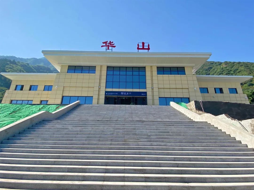 2021年7月30日,华山西站重新更名回华山站,美观、大方、宽敞、明亮的新站舍也顺利建成。改造后的华山站建筑总面积1492平方米,可容纳近三百人同时候车。新站房整体采用石材墙身以及玻璃幕墙现代建材,融入传统秦汉宫殿式建筑风格,形象结合华山山形形态,展现出豪放古拙、刚健质朴大气恢弘的中国建筑魅力。