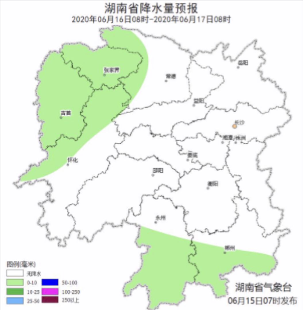 图1 湖南降雨量预报(6月15日08时至16日08时)