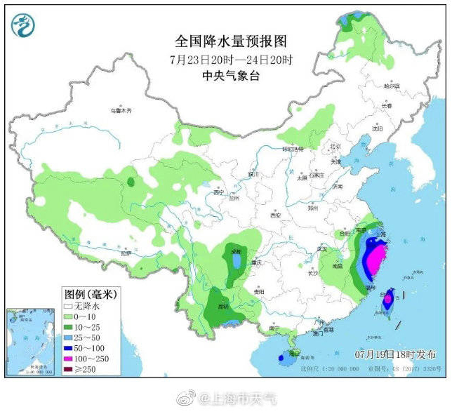 受台风“烟花”影响,7月23日至25日华东沿海地区、东海、黄海南部将出现强风雨,浙江、福建、上海、江苏、台湾等地部分地区大到暴雨,部分地区大暴雨,局地特大暴雨。