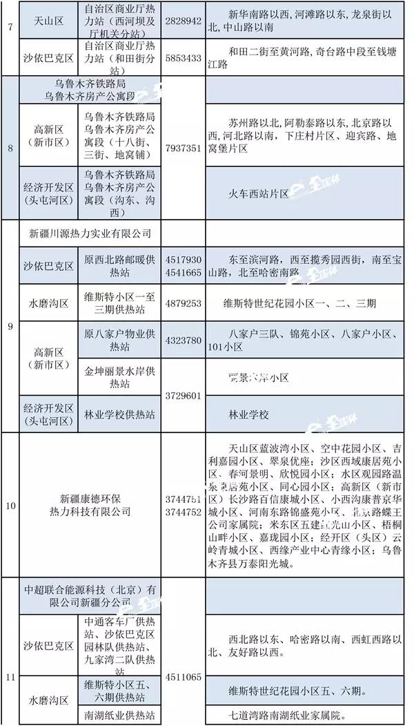 乌市供热行办公布了2016-2017年度采暖期各区县供热管理部门联系方式和首府各供热企业(锅炉房)供热区域的24小时值班电话。如果供热期间,居民家中出现了暖气不热或漏水等供热问题,可以随时拨打所属供热单位的值班电话或向辖区供热管理部门公布电话投诉。