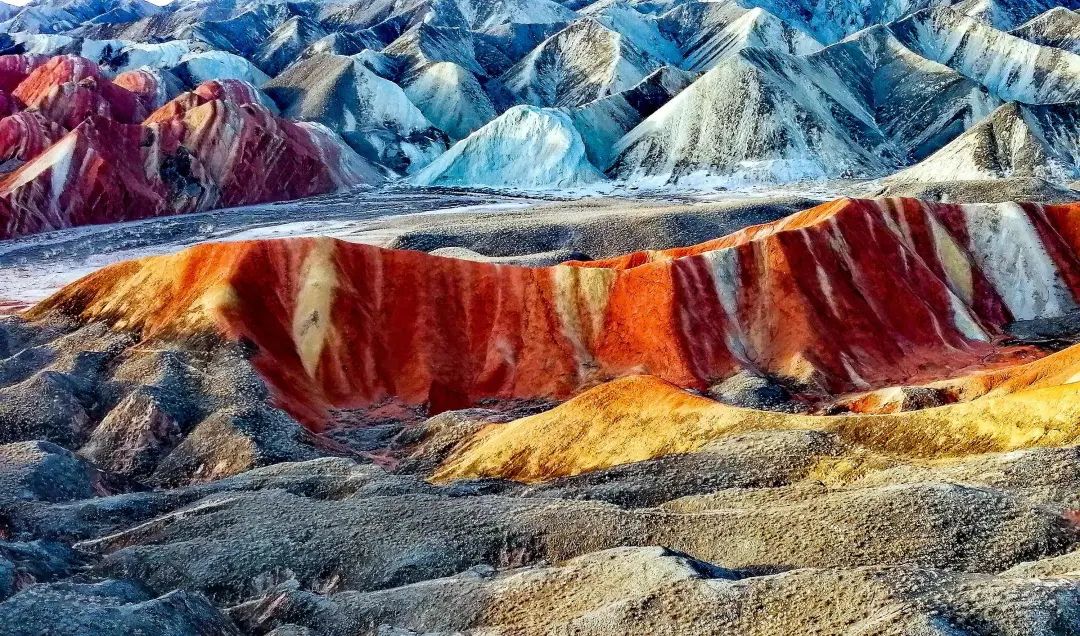 张掖七彩丹霞地处祁连山北麓,被誉为“窗棂状宫殿式丹霞地貌中国第一”, “彩色丘陵中国第一”, “中国最美的七大丹霞地貌景观之一”,其突出特点为“色如渥丹,灿若明霞”,是我国干旱地区最典型的丹霞地貌,其气势之磅礴、面积之广阔、造型之奇特、色彩之缤纷,观赏性之强,举世罕见,全国一流,实属大自然之鬼斧神工。
