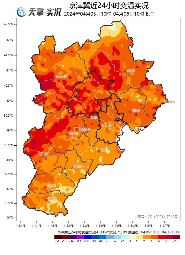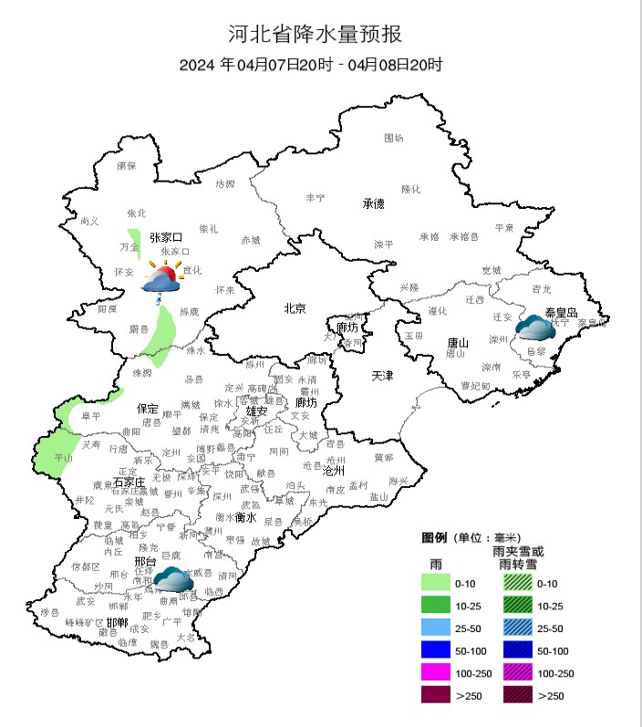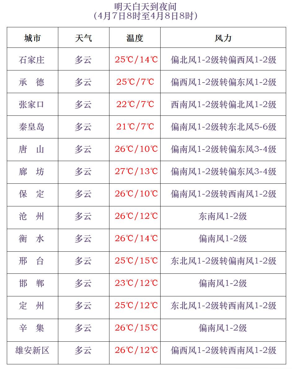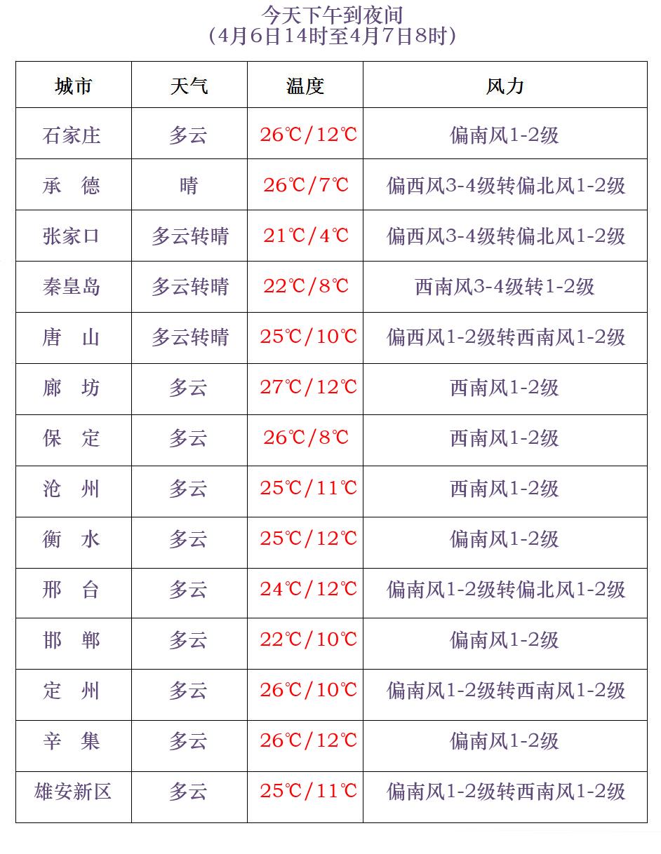 河北省气象台2024年4月6日11时发布天气预报: