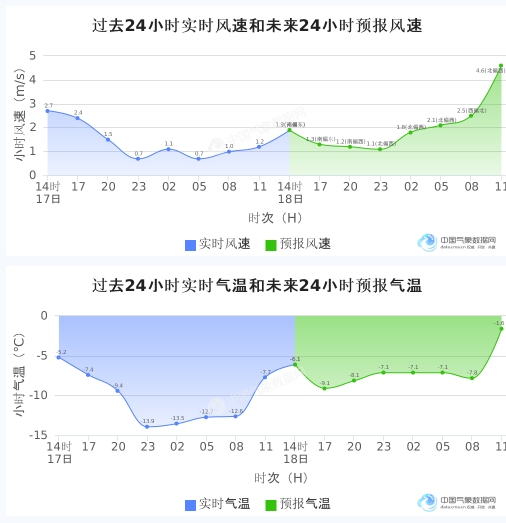 预计江苏省南京市未来24小时(18日13时~19日12时)有小到中雪,最低气温-0.4℃,平均气温1.2℃,累积降水量4.1mm,平均风速1.4m/s,风向以北偏西为主。