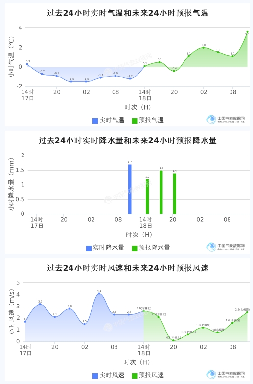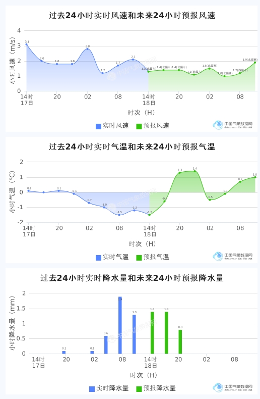 预计江西省九江市未来24小时(18日13时~19日12时)有雨夹雪,最低气温-1.5℃,平均气温0.2℃,累积降水量3.6mm,平均风速1.3m/s,风向以北偏东为主。