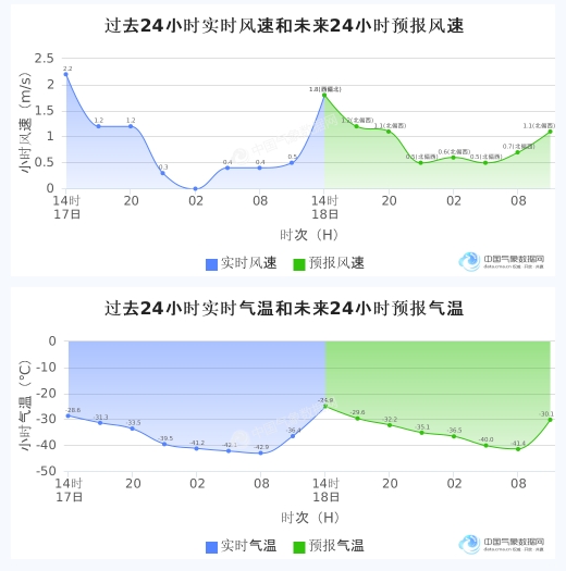 预计内蒙古自治区呼伦贝尔市根河市未来24小时(18日13时~19日12时)天气以晴为主,最低气温-41.4℃,平均气温-33.7℃,降水量为0mm,平均风速0.9m/s,风向以北偏西为主。